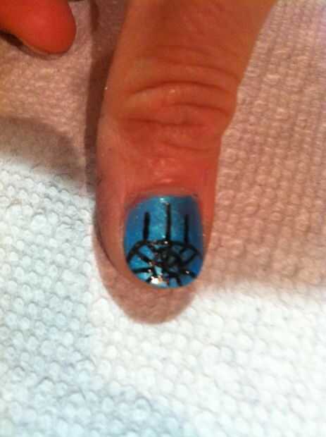 de uñas es divertido! No soy muy bueno en el arte de uñas pero pensé que sería divertido intentar algo que no sea esmalte para uñas. Por lo tanto, utilicé pintura de tela dorada con esmalte de uñas negro. Puede utilizar pintura de brillo también. Mis