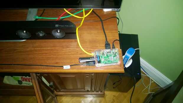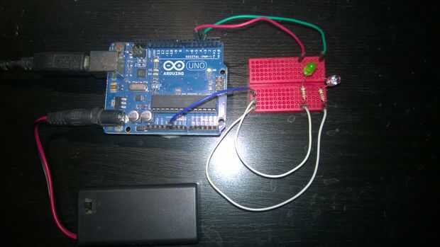 En la práctica, el Arduino y el Pi podrían conjuntamente conectarse a un concentrador USB lo suficientemente fuerte para conducir el Pi, el Arduino y también transmitir una fuerte señal vía el LED IR