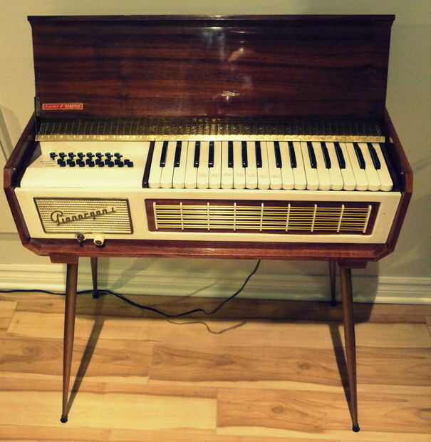 Había comprado un órgano miniatura de 80$ en un mercadillo un par de años atrás y no era capaz de conseguir que funcione correctamente. Es una pieza hermosa y quería mostrarlo, al mismo tiempo convirtiéndose en algo funcional. La idea era instalar un sistema de altavoces y un pequeño proyector de LCD transformar efectivamente la anciana en un sistema de entretenimiento multimedia moderna. Yo inicialmente previsto instalar algunos componentes de ordenador viejo; sin embargo comprendí rápidamente que el espacio sería un problema, particularmente puesto que quería preservar los teclados para la mirada. Entonces se me ocurrió que mi smartphone era más potente y mejor conectado que el ordenador que estaba teniendo en cuenta para el trasplante. Los ordenadores de bolsillo se han convertido en centros de verdadero entretenimiento, con acceso prácticamente ilimitado a contenido y conectividad a la red de mi casa. Esta configuración también significa que el Pianorgan obtiene una actualización automática cada vez que recibo un nuevo teléfono.