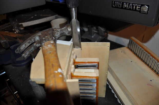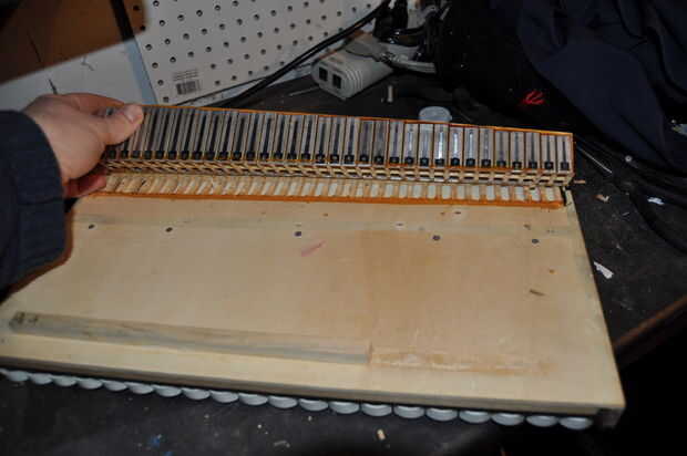 Son de los medios de la vivienda más vintage, más probable usted será capaz de acceder a las tripas desenroscando. En el caso de la Pianorgan, hubo 25 o tan diminutos tornillos que la sujetan juntos. Tomé la tapa, teclados y ventilador. Los soportes para las cañas asomaba hacia abajo en el área que los altavoces de la casa. Fueron pegados en su lugar y eran relativamente fáciles de desplazar. Usé un cincel para que interrumpiría en el lugar correcto seguido por cierta torsión a la pop off.