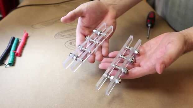 Utilizando unos tornillos un poco más grandes que el espacio de los agujeros dos de las barras de 1/2" de distancia. Esto completa las barras de electrodos.