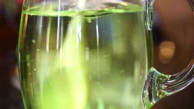 En un bol u otro recipiente, mezclar el agua con algún colorante amarillo y verde para hacer un jugo de cerebro.