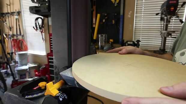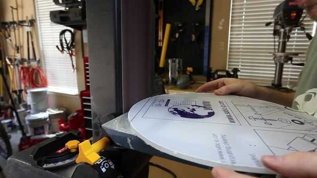 Usando una lijadora de su elección, o simplemente un papel de lija pegado a un bloque de madera, lijar los bordes de los círculos de abajo de la línea.