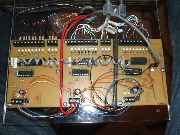 Todos los tres tableros reaccionan cuando se recibe una señal para indicar que el disco duro ha sido visitado. Cada tablero haciendo una secuencia de efectos de iluminación LED dura unos pocos segundos. Si el disco no obtiene acceso a otra vez, las juntas se remontan a su bucle estado de 'default'. Si el disco duro sigue acceder (esto sucede a menudo) entonces siguen iluminación LED. La primera tabla mantiene un contador de tiempo pasando y si el disco duro ha sido repetidamente acceso durante un periodo de 30 segundos o más, entonces un 'más frenético' conjunto de efectos de iluminación LED activa y un segundo cable de señal comunica esta situación a los otros dos tableros para hacerles aumentar el tempo de sus efectos de LED.