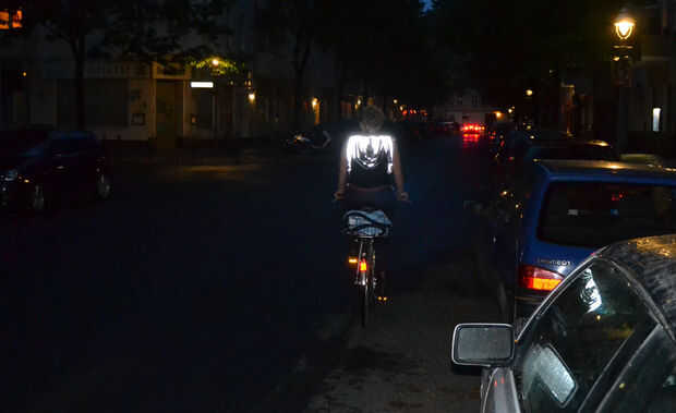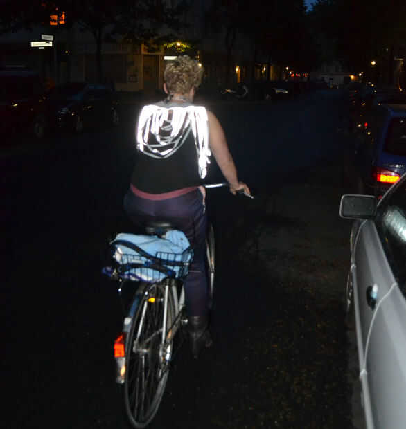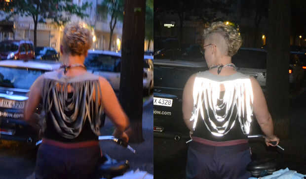 asi que me hice mi propio chaleco de tela reflectante que es un poco más de moda y no tan caro.