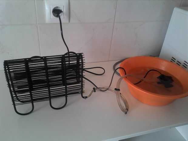 Encender la bomba, coloque un ventilador detrás del radiador y disfrute de su unidad de aire acondicionado barato!