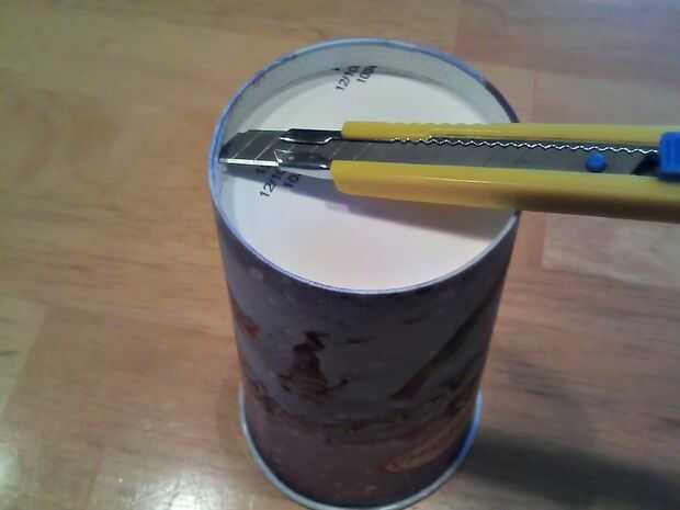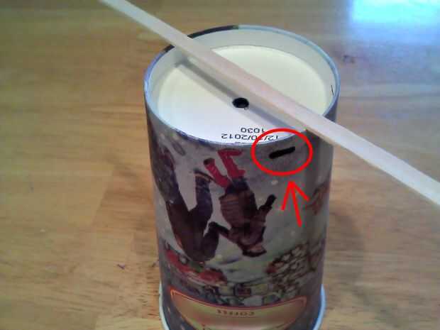 Mientras estás en ello, marque el centro de la parte inferior de la taza y le dan un rápido jab con una punta... el cordón / cuerda vendrá por aquí. Hacer las incisiones de perca con un cuchillo afilado y deslice la palanca a través de las ranuras. Voila!