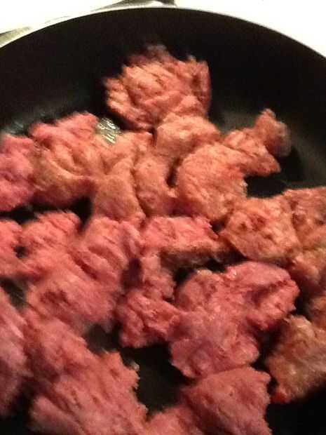 Brown tu hamburguesa y luego dorar la salchicha. Drenar la grasa de la carne. Poner en un crockpot. Si pones a una carne de primera y la mitad del queso y tomate, luego las otras carnes y el resto del queso y tomates, cocina un poco más rápido de esa manera.