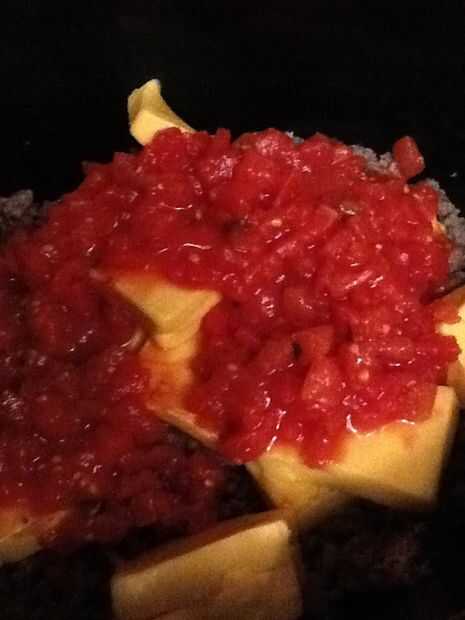 Crockpot Chile1 libra carne molida de res (cocido y escurrido)2 latas de frijoles (habichuelas) de Chile2 latas de frijoles negros (drenado y enjuagados)1 cebolla picada1 lata de salsa de tomate1 tomate capturado1 taza salsaCondimento de Chili (ver p