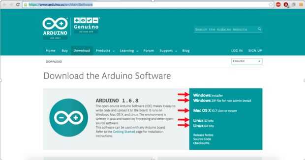 1. ir a arduino.cc y descarga el Arduino Software según tu sistema operativo (Windows, Mac, Linux)