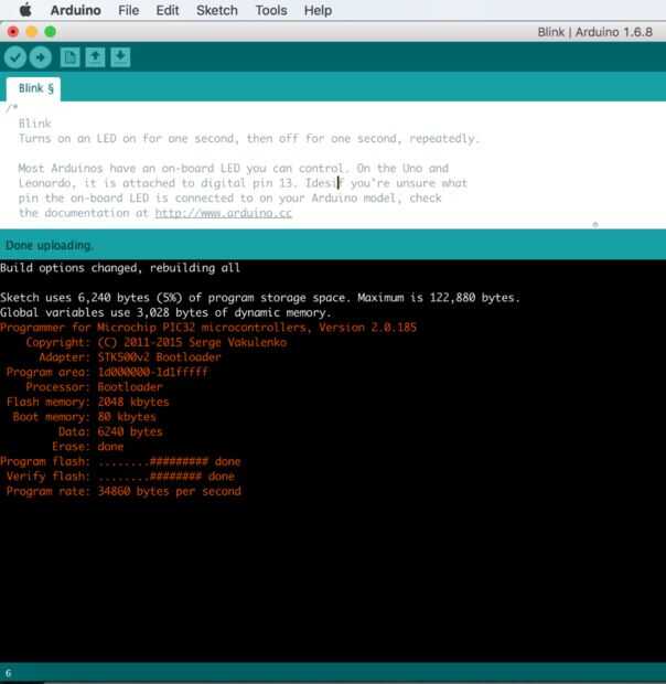 Programación utilizando el IDE de Arduino a la placa ChipKIT Dp32