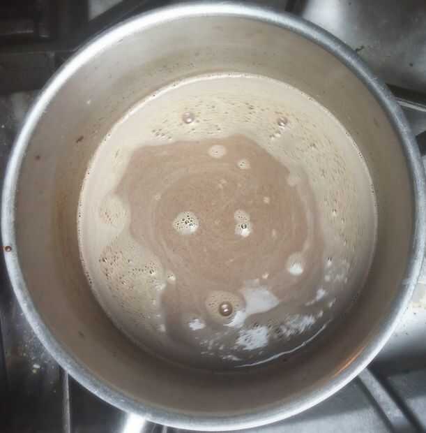 Otra familia favorito, mi papá me enseñó el mejor chocolate caliente haciendo técnica conocida por el hombre. Es muy rico y delicioso!Todo basado en proporciones tan sólo tienen los ingredientes en la acción:LecheAzúcarCrema de lecheCacao en polvoExt