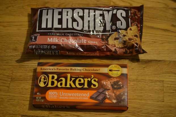 - de baker ~ 1 bar o 1 taza chispas de chocolate semi dulces o chocolate (o chocolate con leche si sus invitados no lácteos)