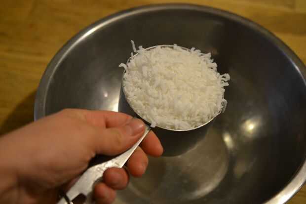 2. En un tazón mediano, agregue 3 tazas de coco.