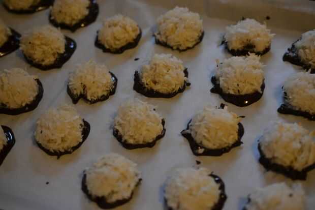 Paso 6: Macarrones de coco de inmersión en chocolate