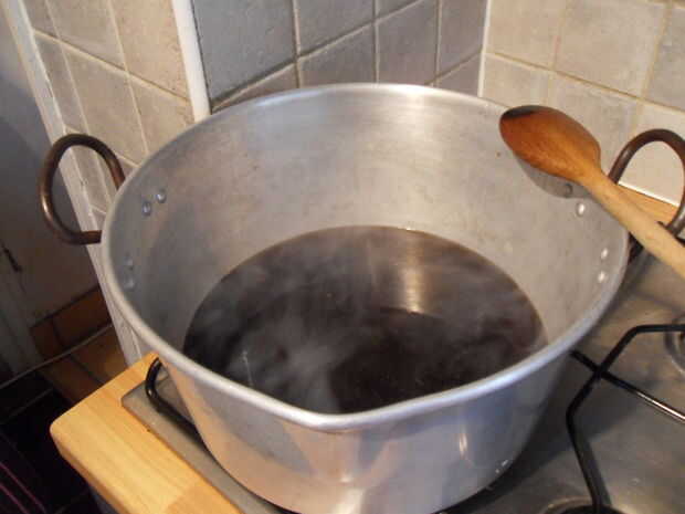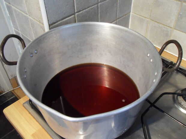 Vierta el litro de vinagre en una cacerola grande. Añade los 500g de azúcar moreno y la revuelve a fuego medio hasta el azúcar se haya Exclusively por completo.
