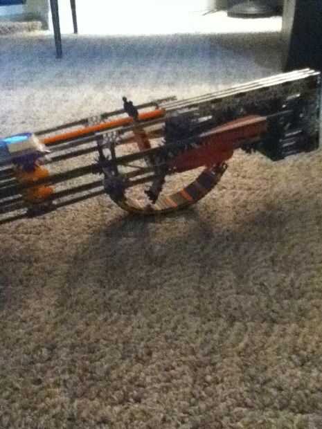 Este es el CI1 (imitación de ballesta 1: este es mi primer intento). Todavía estoy tratando de encontrar la munición de la longitud correcta para él pero puede disparar a más de 50 pies usando las barras largo gris. No lo sé y su no robusto pero todavía estoy modificándola. Es difícil encontrar tiempo entre la escuela y baloncesto pero eventualmente obtendrá la versión completa para arriba.