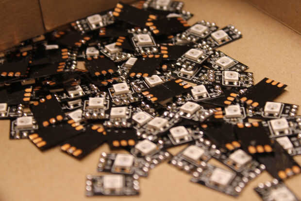 Me cortó todos los NeoPixels y les volvió a conectar. No quiero comprar 1000 de NeoPixels y dejar que los poblados en el marco porque yo quería luz uno por uno al azar. Cien punto será suficiente para usted confundido cuántos NeoPixels hay detrás de la pantalla.