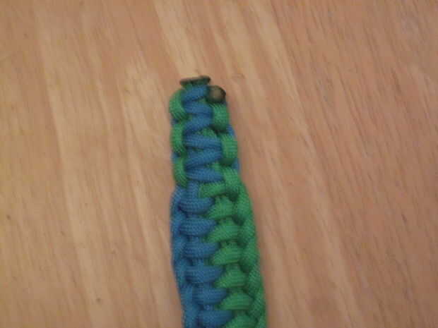una vez que hay alrededor de 1-2 pulgadas izquierdo start haciendo trenzas cobra hasta que no haya casi ningún núcleo del moe. corte y chamuscar el núcleo cierran bastante que el núcleo no va dentro de la banda pero no para que está pegando la salida y cortar y chamuscar el outerr cuerdas para que el cinturón no desentrañar.
