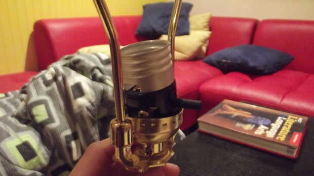 Ahora... ir todo el camino hacia la parte inferior de la lámpara y tire del cable tan duro como usted una hasta que quede ajustada en la parte superior. Asegúrese de que no tire del cable de interior toma, o la lámpara no funcionará. (Foto 9)