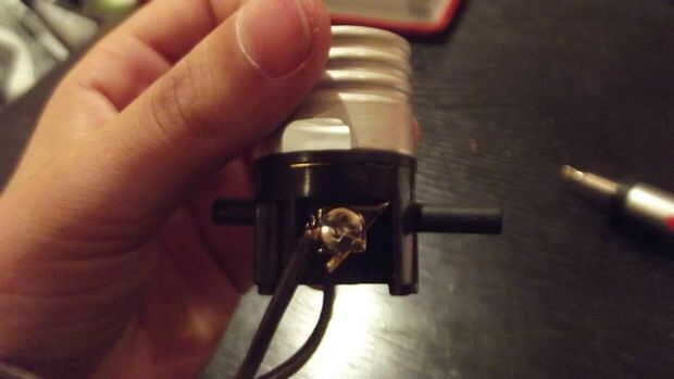 El extremo abierto de su alambre y desatornillar los tornillos del interior toma. Enrolle el cable alrededor de los tornillos y el tornillo vuelva. Debería verse como pic 5.