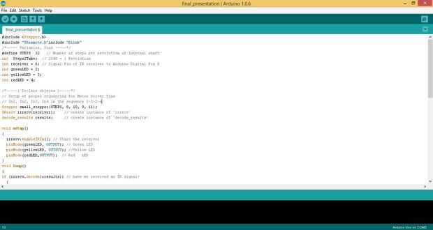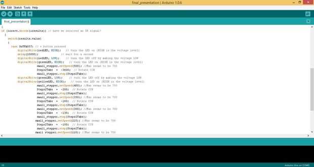 Paso 3: declarar sus objetos-en orden para su motor paso a paso trabajar, usted tiene que darse cuenta de cómo funciona. Por ejemplo, para "Paso a paso smal_stepper (pasos, 8, 10, 9, 11)", tienes que tener los números en ese orden porque ese es el caso en que los imanes dentro de los pasos del motor trabajo. No se puede cambiar con un 8.9.10.11. Tienes que declarar también la IRecv y decode_results para que el control remoto envía una señal infrarroja al receptor, y para que el receptor envía una señal hacia el arduino lo dejó saber que tiene una señal del mando a distancia para comenzar una acción.