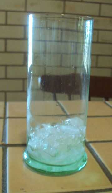 Añadir poco de hielo triturado sobre el vidrio. Cubitos de hielo funcionará demasiado pero creo que mejor queda machacado.