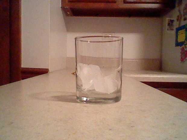 Poner en primer lugar, 3 cubitos de hielo en su 8oz cristal.