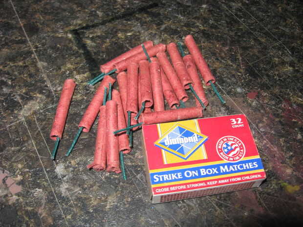 Fuegos artificiales - como muchos como usted desea, conseguí un pack de 100 TNT Blaster de tierra alrededor de año nuevo. Hay generalmente algunas tiendas que están abiertas todo el año, busca en Google en tu zona para conseguir algo. Costo: alrededor de $5,00
