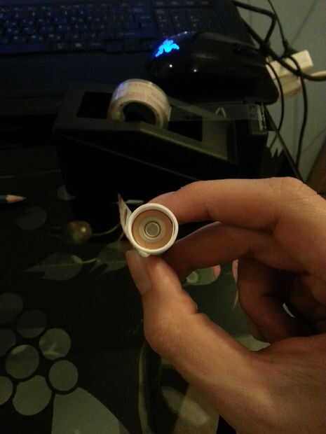 Luego Enrolle firmemente la tira alrededor de la batería AA y péguela en su lugar.