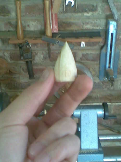 Por desgracia, si no plantea un torno tomaría un poco más de tiempo para hacer el cono de nariz. Entonces tienes que usar lo que tienes, como papel de lija, cuchillo de bolsillo o una esmeriladora de banco.