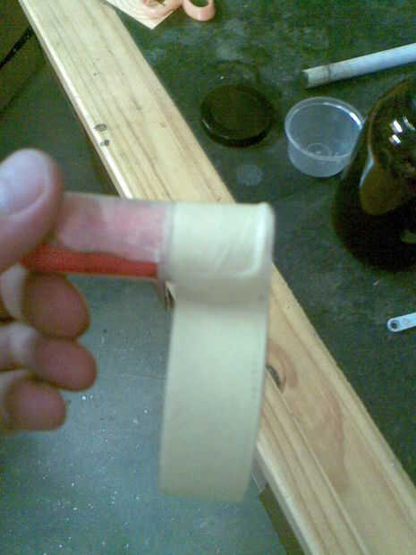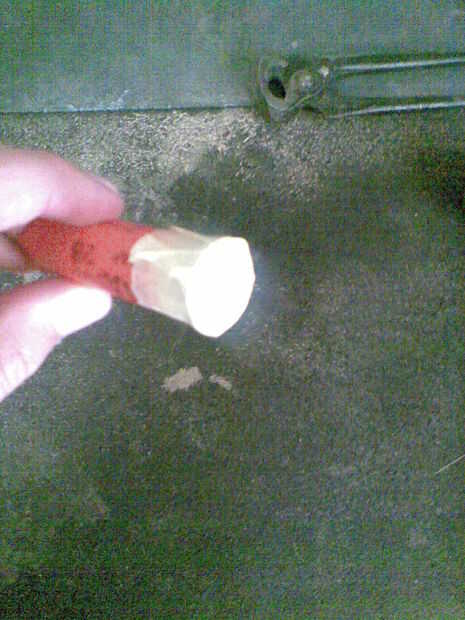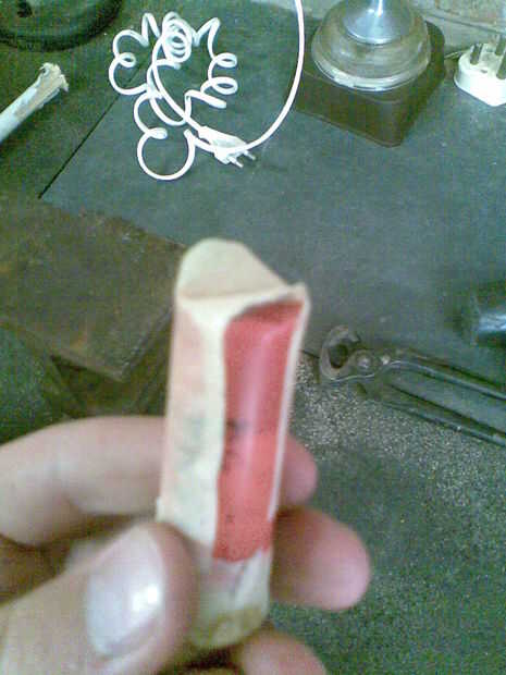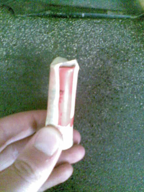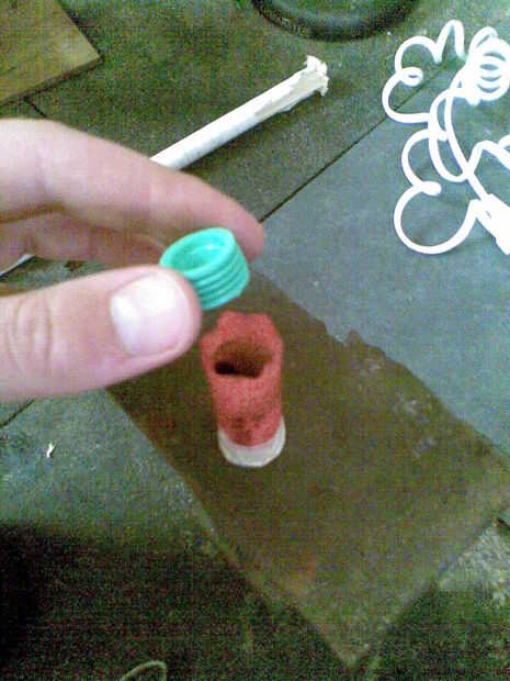 Después de la terminación de la quitar la cinta que grabó sobre el lado del metal de la cáscara para dejar el poder de caer hacia fuera del motor. Tomar su máquina de perforación con la broca de 4mm interior y taladro lanzó el inyector en el motor por unos 35-40mm. Esto es para que usted puede insertar el fusible y para crear la cámara de combustión.