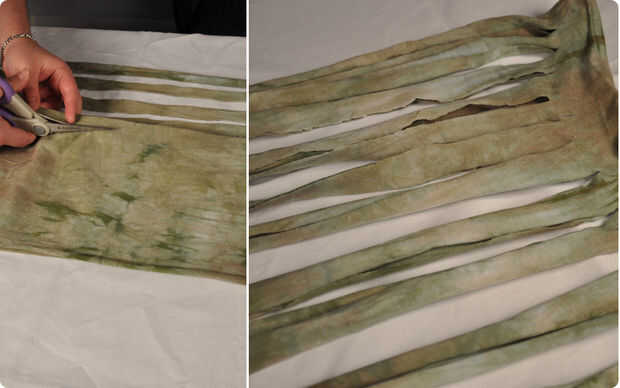 Todo lo que necesitas es una camiseta no deseada, tijeras y a 30 minutos.Paso 1: Pone la camiseta de su selección sobre una superficie plana. Inicio y apagado cortando el dobladillo (la parte inferior de la camisa).Paso 2: Principio en la parte infer