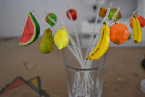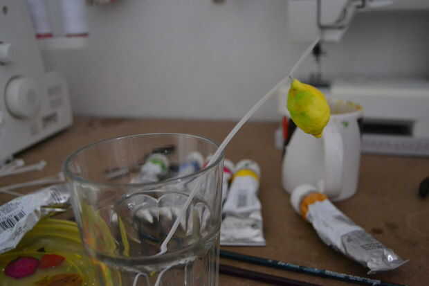 dejó el acrílico de la pintura seca - acabo de poner el lazo de cable con la fruta en ella en un vaso.