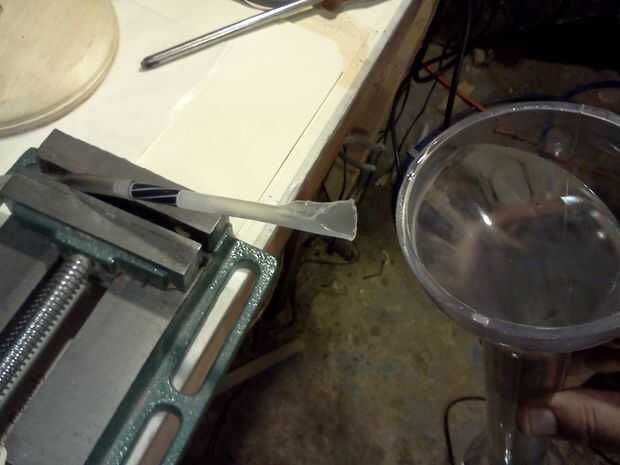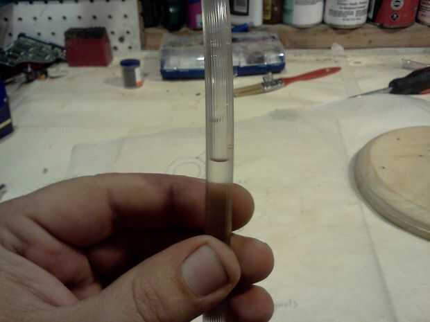 Una vez se ha mezclado completamente su brebaje, simplemente llene el tubo hasta el punto donde dejas la misma cantidad de tubo de vacío como su extremo sellado. ¿Mantenga hacia arriba y buscar fugas en el sellado final, ninguno? ¿Gran?