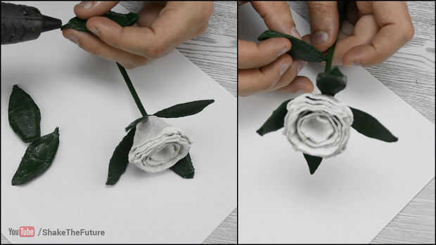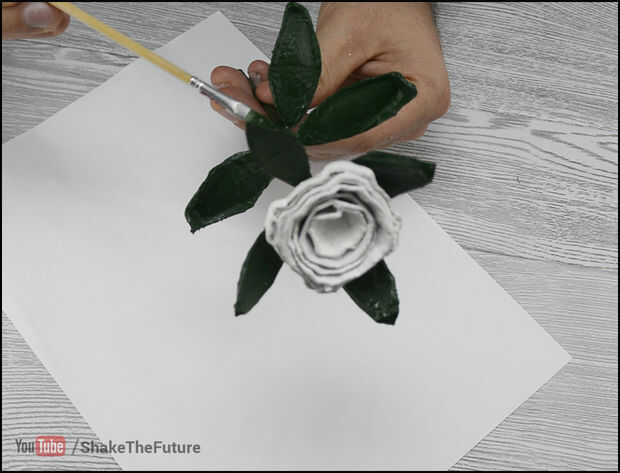 Luego había pegado las restantes hojas al tallo y había pintado el pegamento, por lo que no se veía.