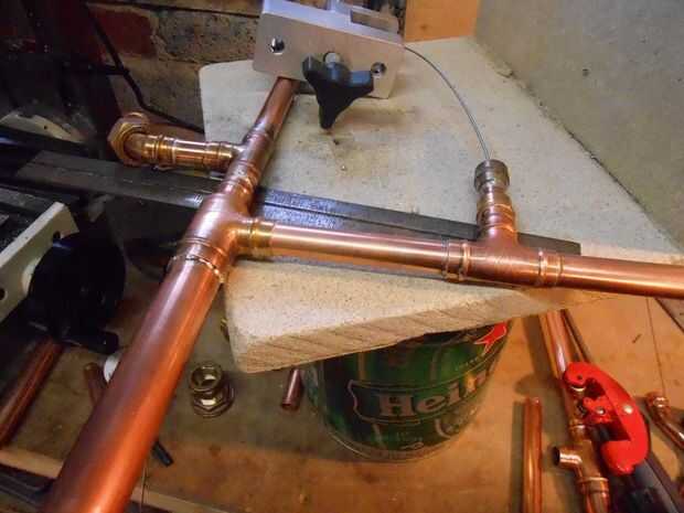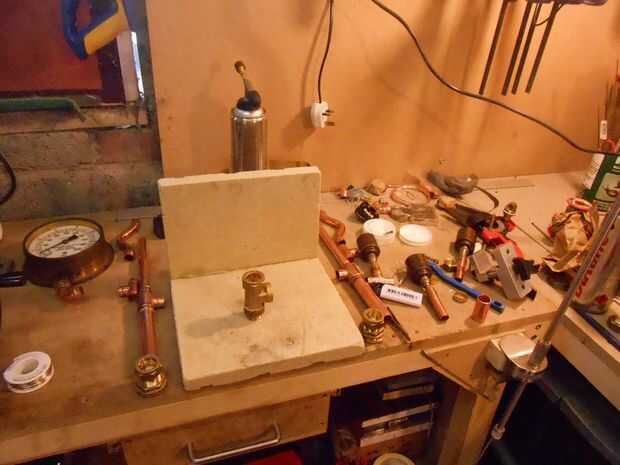 Trabajo con piezas soldable es muy fácil siempre y cuando usted tiene un área de prueba de fuego para trabajar en, mina consiste en un par de trozos de aislante de vermiculita fuego Junta atornilladas que recibí FOC de un showroom de chimenea. Flujo es una necesidad como es la lana de acero. Preparar cualquier juntas y tubos por frotarlos con la lana de acero y luego darles una ligera capa de pasta fundente, esto hace que la soldadura en el flujo de conexiones fácilmente y uniformemente. Cuando el calentamiento de las partes uso un moderado de la llama de un soplete de gas y mueva hacia adelante y hacia atrás sobre la Unión y la primera pulgada de tubo que sobresale. Esto permite a ambas partes calentar uniformemente y Únete más rápido.