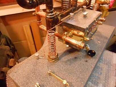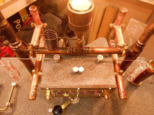 Ocupa el reloj en su propio bloque de 'granito' y lo bulbos para arriba con chapa de latón y las tuercas a 'punk'. Es compatible con dos brazos hechos de tubo de cobre y unos accesorios con anillos de latón munsen para adaptarse a la tubería transversal de la lámpara y los brazos de suspensión.