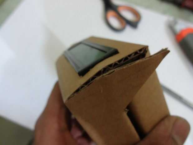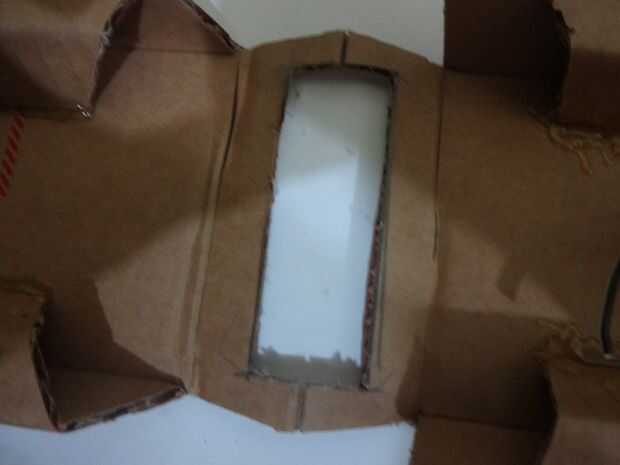 Mantenga la pantalla LCD en el centro de la zona de la pantalla LCD, marca con un lápiz. Utilizando una regla, hacer el rectángulo correctamente y cortarlo cuidadosamente con una cuchilla. Doblar la pantalla LCD y aplique el pegamento a las bisagras para mantenerlos en su posición correcta. Inserte el LCD y hacer modificaciones si es necesario.