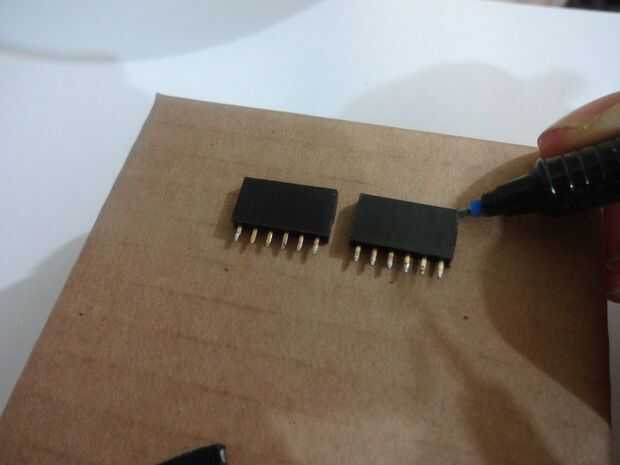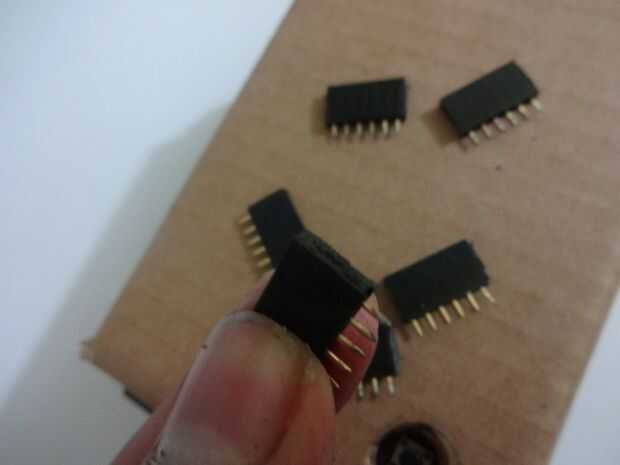 Corte de pernos de 6 x 6 pines header hembra. Lije los lados para que sea suave.