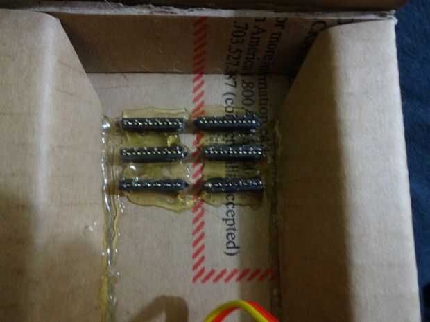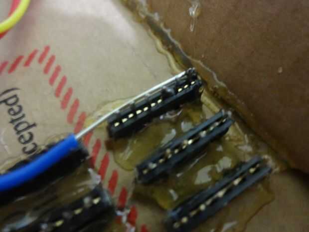 Pequeñas cantidades de soldadura se aplican a todos los pernos y utilice un puente pelado para conseguirlo todos juntos. Asegurarse de que todos ellos están conectados. No mantener en la calefacción para que sea perfecto. También un pin de calefacción calienta los vecinos.