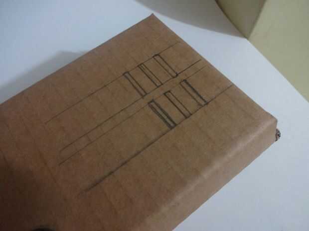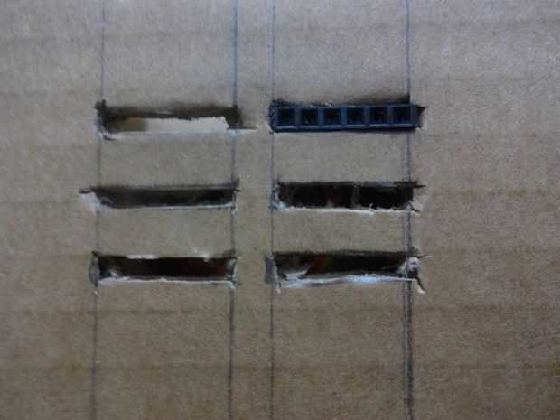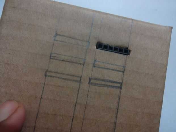 Marcar las posiciones y corte las ranuras para las patillas de la cabecera. Inserte en su lugar y pegar desde el interior.