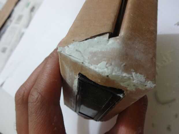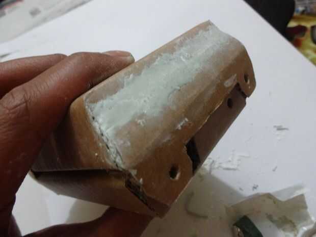 Mezclar bien el m-seal(epoxy putty sealant, gets very hard when it dries). Ponerlo como se muestra en las imágenes y uso polvo + superficie plana para darle forma. Deje que se seque.