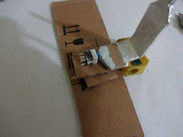 Nota: No podemos usar pegamento caliente aquí ya que es parecido a la goma y el interruptor debe ser pegado con algún material frágil fuerte.