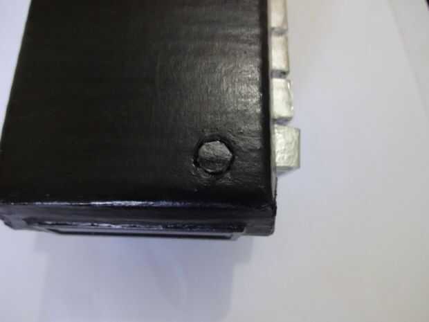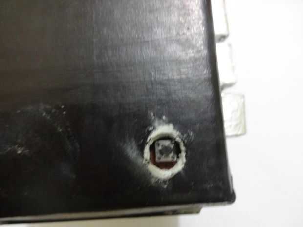 Uso de M-seal (o equivalente) para llenar los huecos pequeños en el área de pruebas y el botón de cambiar de modo. Después del secado, lijar bien y aplicar una segunda capa de pintura.