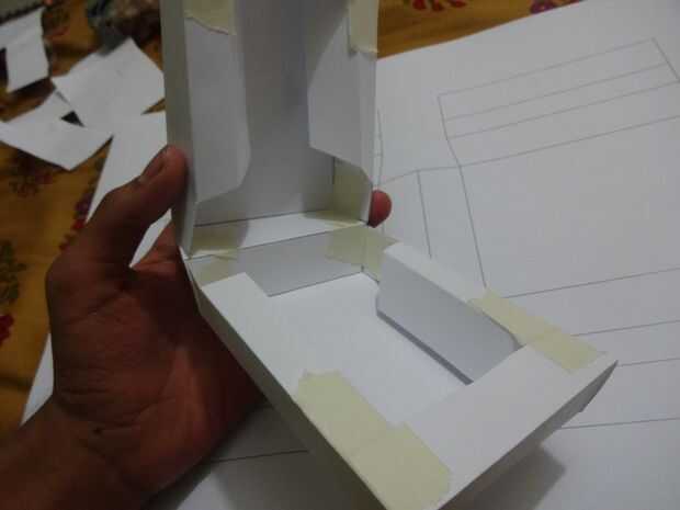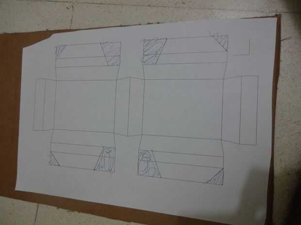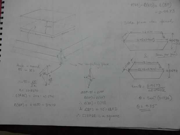 Durante la prueba de los diferentes circuitos y cuando tuve la idea aproximada de lo que quiero hacer, me decidí a ir con el diseño de circuitos integrados. Medido reales ICs, tomó proporciones de sus longitudes, consiguió el ángulo con algunos trignometry que alrededor de 80 grados. Entonces decidió la amplitud y longitud de la caja interna y construido sobre ella (se muestra en la imagen). Una vez que el diseño fue planeado, inicialmente empecé a dibujar con precisión en un papel de gran tamaño. Después de un poco de una lucha de líneas precisas, me di cuenta que este tipo de trabajo debe hacerse en un equipo! Así que aprendí CAD básicos y ha hecho el diseño en él. :) Pero este esquema no funcionó hacia fuera y tuve que rehacer todo el corte y fabricación de la caja. (Ver imágenes)