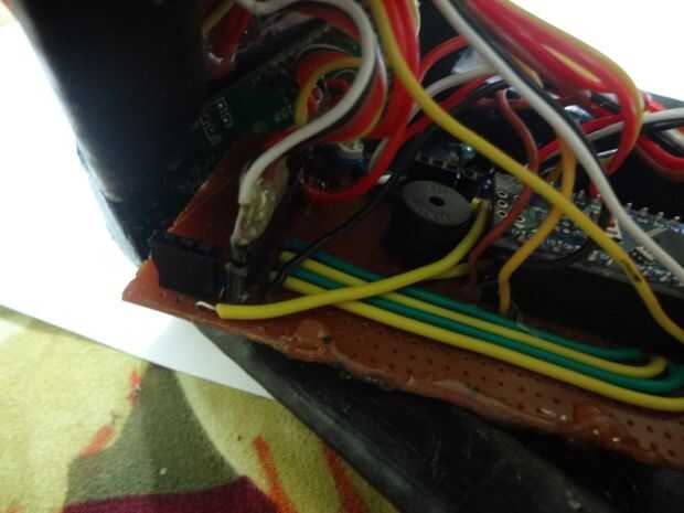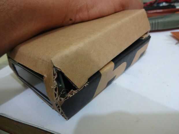Cuando se hicieron todos los empalmes de la soldadura y proyecto estaba a punto de conseguir acabado, en la emoción y la impaciencia, pegué la PCB dentro de la caja antes de agregar la caja de la batería. Tuvo que volver a derretir el pegamento con un soldador(con cuidado no para derretir cualquier aislamiento de alambre) y retirar el PCB a soldar los cables caso de batería en. El soldador puede limpiarse luego.