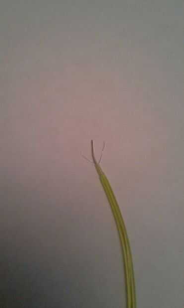 Sugiero usar un cuchillo del exacto pero no es necesario. Puede iniciar 1/2 pulgada desde el final pero hasta que seas hábil con EL soldar, sería más fácil empezar sobre una pulgada pulgadas (lo hice-la decantación se puede cortar más adelante). Extiende el cable de angel aparte para después. A continuación tendrá que eliminar la capa de fósforo alrededor del alambre de cobre. Este es el donde el cortador de alambre viene en. Coloque el cable en la herramienta de corte y evitar cortar el cable "piel" de la capa de fósforo.