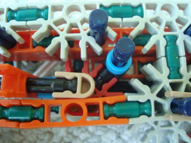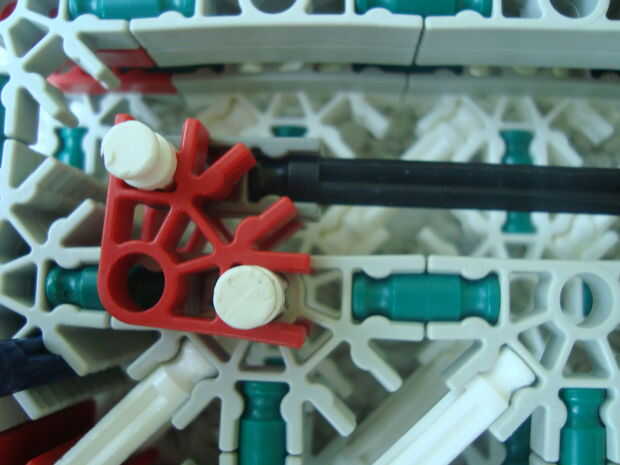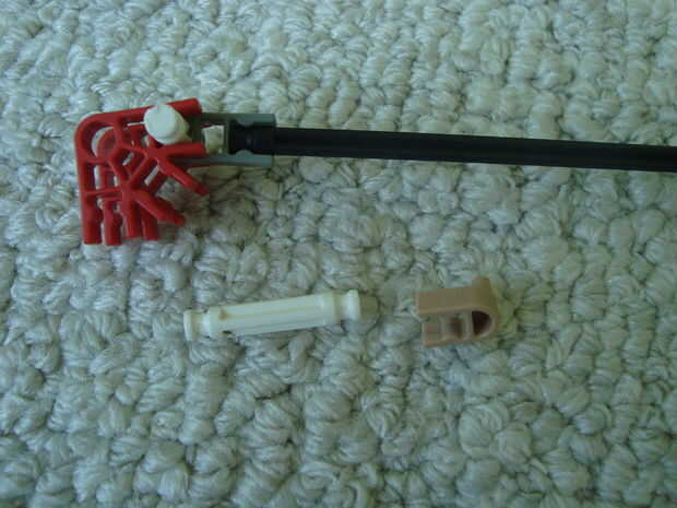 11) Fije la parte delantera de la guía de perno aquí, vas a tener que forzar un poco. Se debe ir en el orificio más cercano a la parte posterior del conector rojo