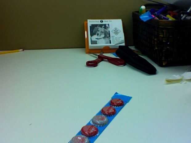 en el 2009 formé un campamento de arte comunidad Go Green y este fue uno de los proyectos de los campistas poco hicieron.  La base es reciclada de un envase de plástico de la manteca de cacahuete, pero la diversión es el pequeño errores que decoran l
